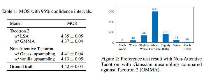 제안 방법이 Tacotron2의 성능과 거의 유사함.