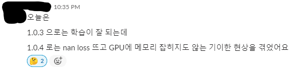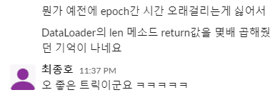 그 외에도 epoch 사이의 dataloader가 느려진다던가 하는 이슈가 있는 것 같은데, 아직 원인도 해결 방법도 찾지 못했습니다. 동아리에도 비슷한 이슈를 겪으신 분들이 있는 것 같았는데, 아직은 ad-hoc로 해결하고 계신듯하더라고요. 이게 pl자체의 이슈인지, 혹은 원래도 PyTorch에 있는 현상인지는 모르겠습니다.