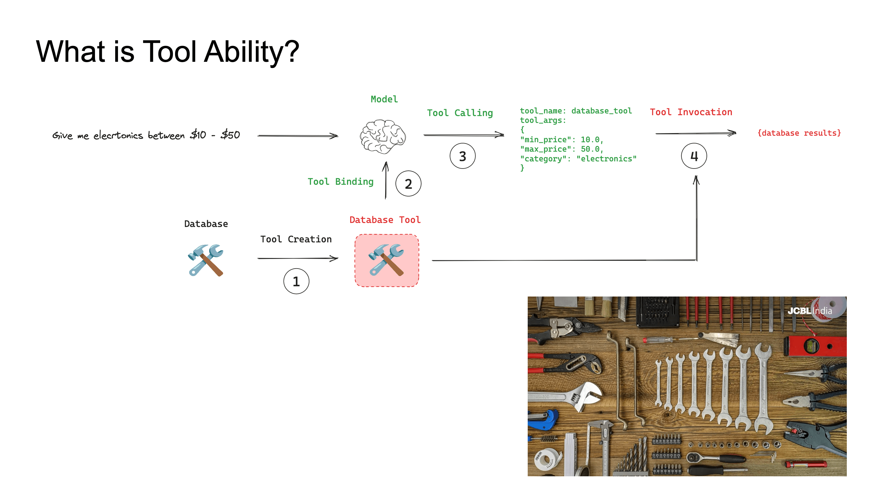 Tool ability는 크게 세 가지 축으로 정의할 수 있습니다. What - 어떤 툴을 호출할 것인가, When - 어느 시점에 호출할 것인가 (invocation timing). How - 어떤 argument를 구성할 것인가.